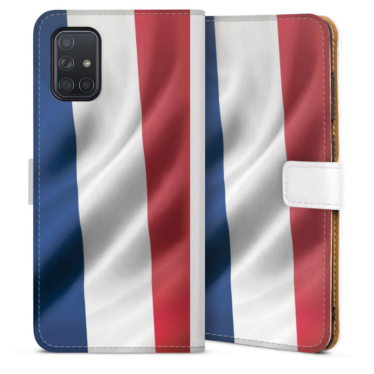 For our Sideflip Case we are using our advanced direct printing technology. The back and frontside are fully printabale, the inside of the phone bag is left unprinted. You can order the phone case without print, printed completely or also with a partial print.