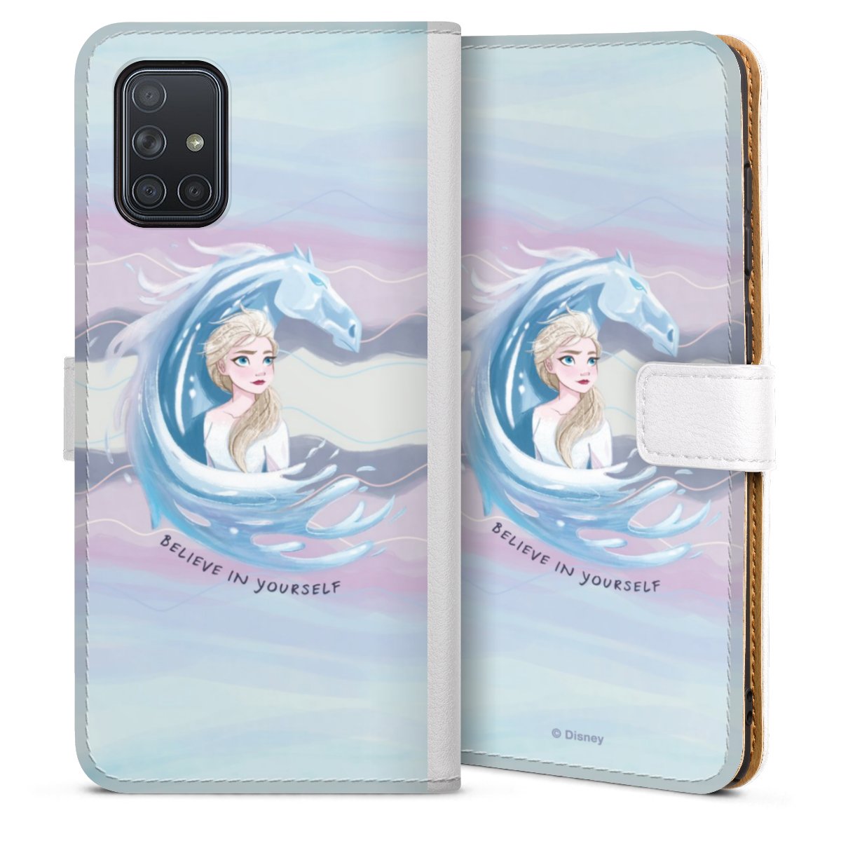 For our Sideflip Case we are using our advanced direct printing technology. The back and frontside are fully printabale, the inside of the phone bag is left unprinted. You can order the phone case without print, printed completely or also with a partial print.