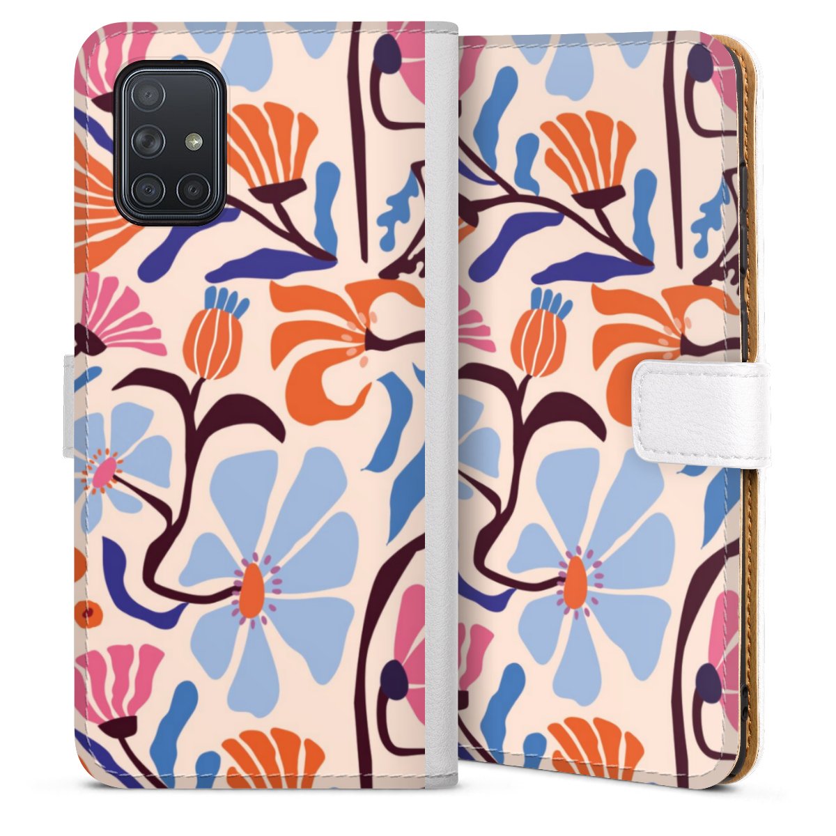 For our Sideflip Case we are using our advanced direct printing technology. The back and frontside are fully printabale, the inside of the phone bag is left unprinted. You can order the phone case without print, printed completely or also with a partial print.