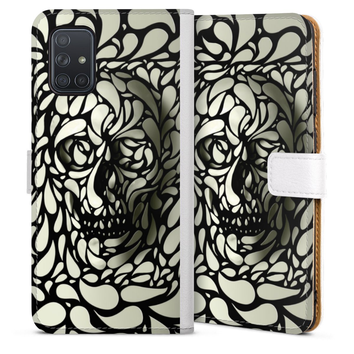 For our Sideflip Case we are using our advanced direct printing technology. The back and frontside are fully printabale, the inside of the phone bag is left unprinted. You can order the phone case without print, printed completely or also with a partial print.