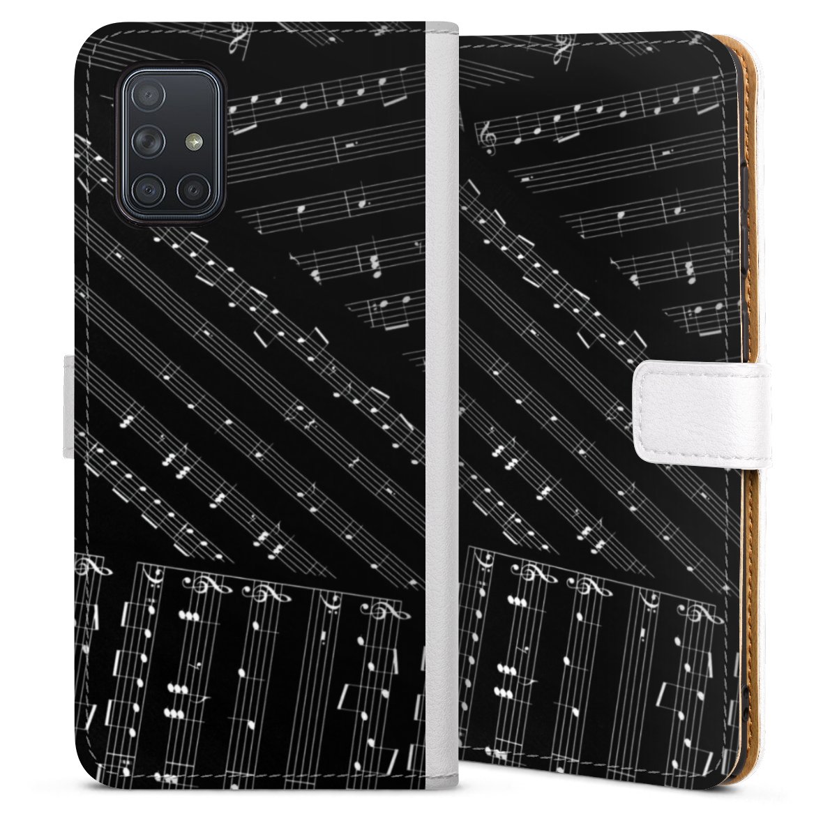 For our Sideflip Case we are using our advanced direct printing technology. The back and frontside are fully printabale, the inside of the phone bag is left unprinted. You can order the phone case without print, printed completely or also with a partial print.