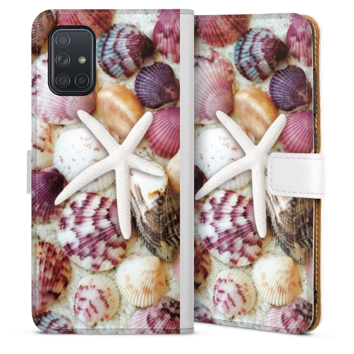 For our Sideflip Case we are using our advanced direct printing technology. The back and frontside are fully printabale, the inside of the phone bag is left unprinted. You can order the phone case without print, printed completely or also with a partial print.