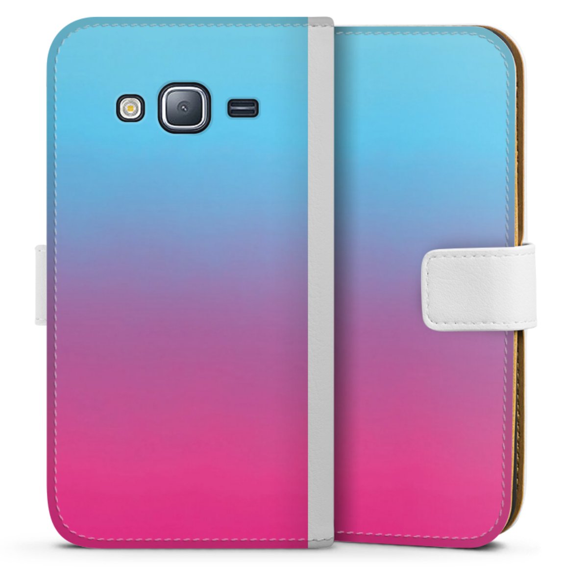 For our Sideflip Case we are using our advanced direct printing technology. The back and frontside are fully printabale, the inside of the phone bag is left unprinted. You can order the phone case without print, printed completely or also with a partial print.