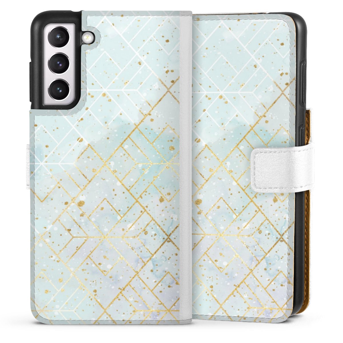 For our Sideflip Case we are using our advanced direct printing technology. The back and frontside are fully printabale, the inside of the phone bag is left unprinted. You can order the phone case without print, printed completely or also with a partial print.