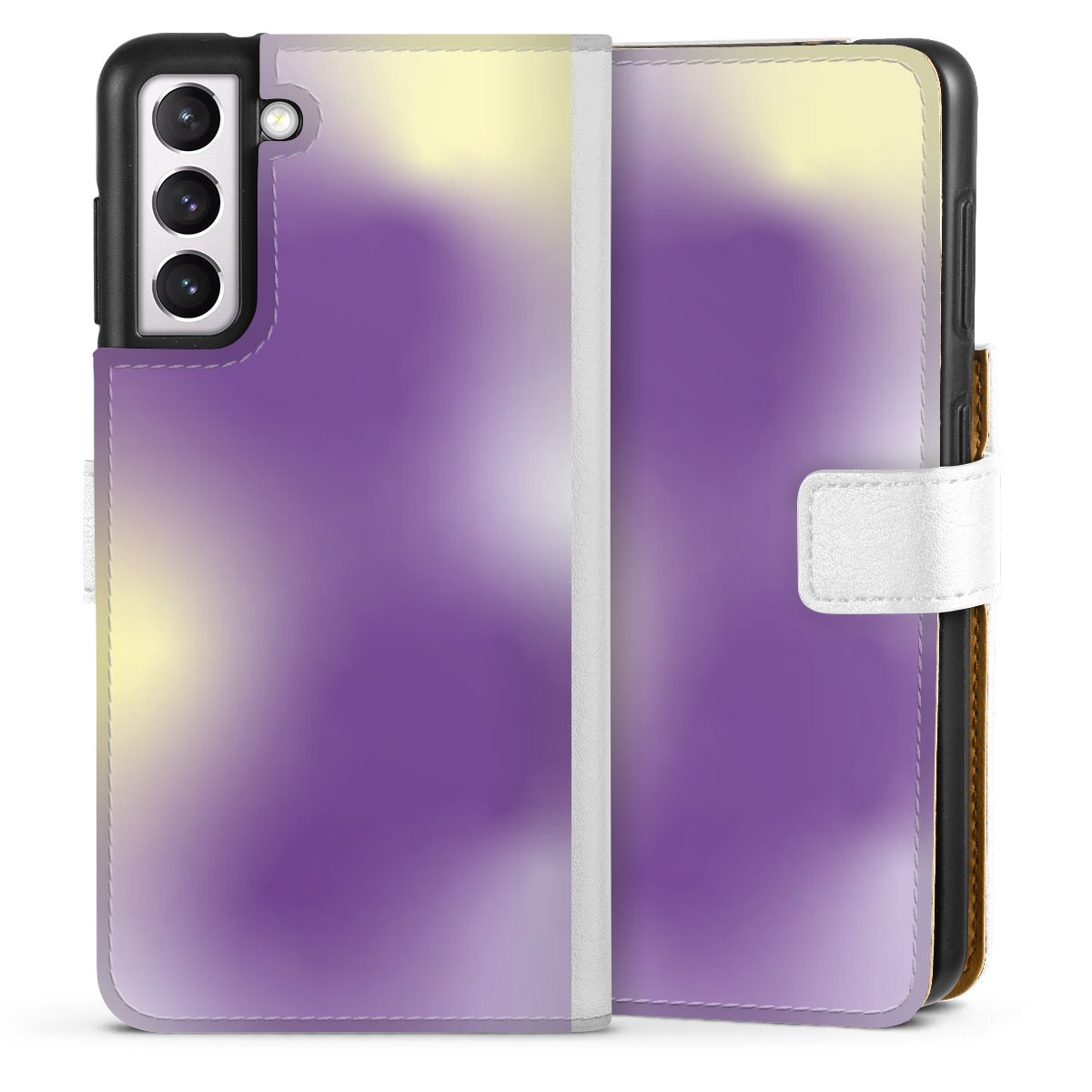 For our Sideflip Case we are using our advanced direct printing technology. The back and frontside are fully printabale, the inside of the phone bag is left unprinted. You can order the phone case without print, printed completely or also with a partial print.