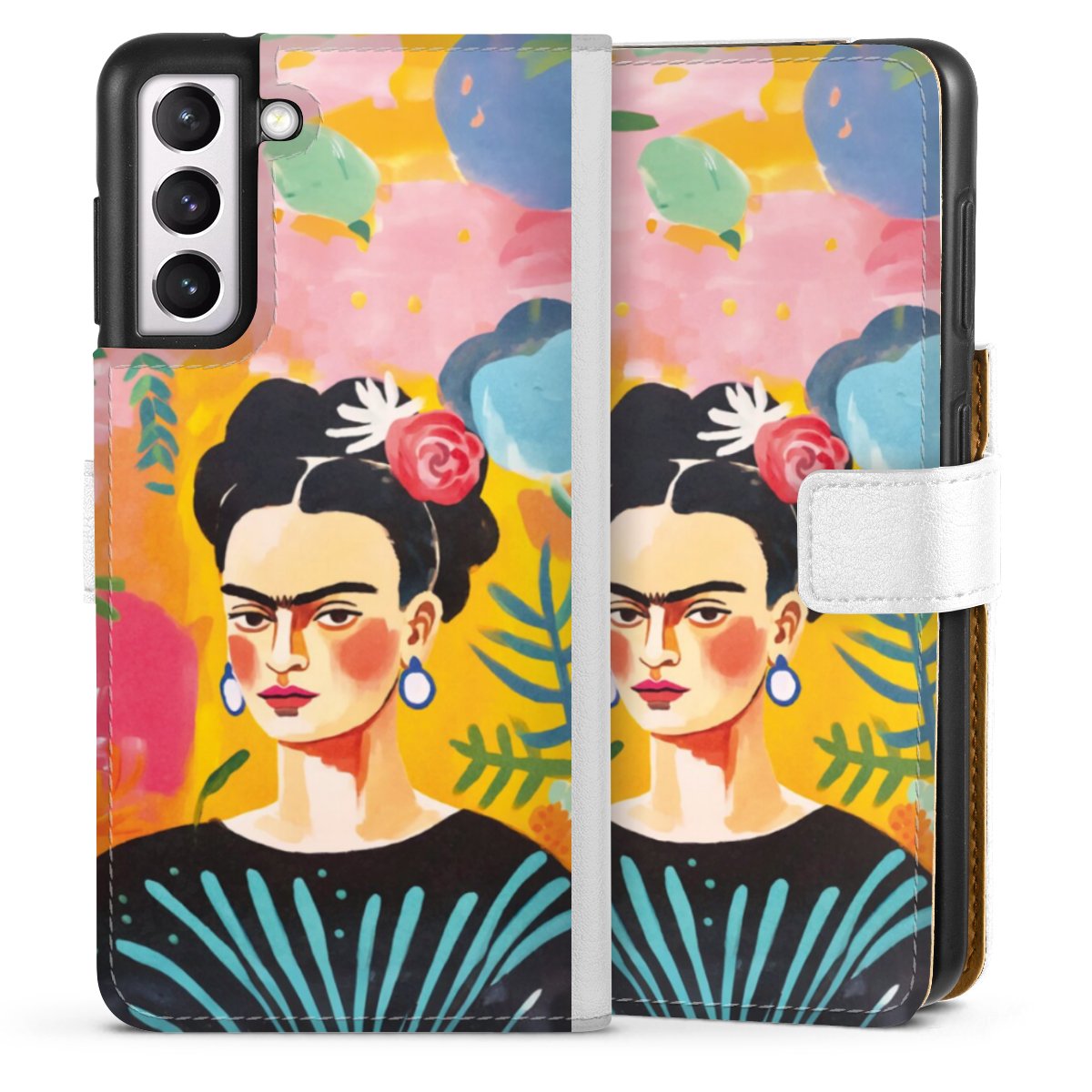 For our Sideflip Case we are using our advanced direct printing technology. The back and frontside are fully printabale, the inside of the phone bag is left unprinted. You can order the phone case without print, printed completely or also with a partial print.