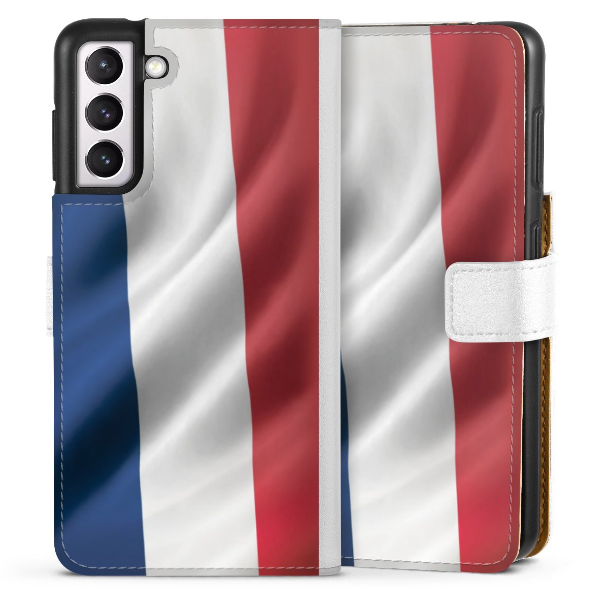 For our Sideflip Case we are using our advanced direct printing technology. The back and frontside are fully printabale, the inside of the phone bag is left unprinted. You can order the phone case without print, printed completely or also with a partial print.