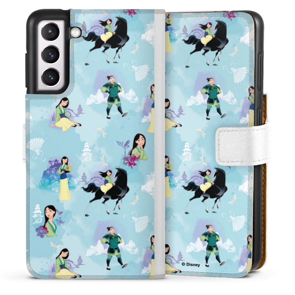 For our Sideflip Case we are using our advanced direct printing technology. The back and frontside are fully printabale, the inside of the phone bag is left unprinted. You can order the phone case without print, printed completely or also with a partial print.