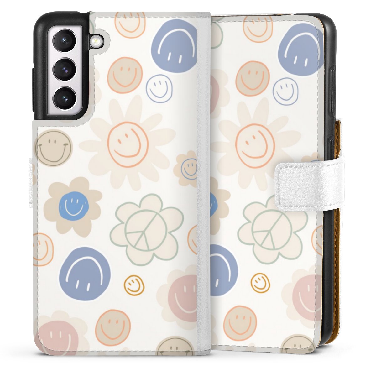 For our Sideflip Case we are using our advanced direct printing technology. The back and frontside are fully printabale, the inside of the phone bag is left unprinted. You can order the phone case without print, printed completely or also with a partial print.