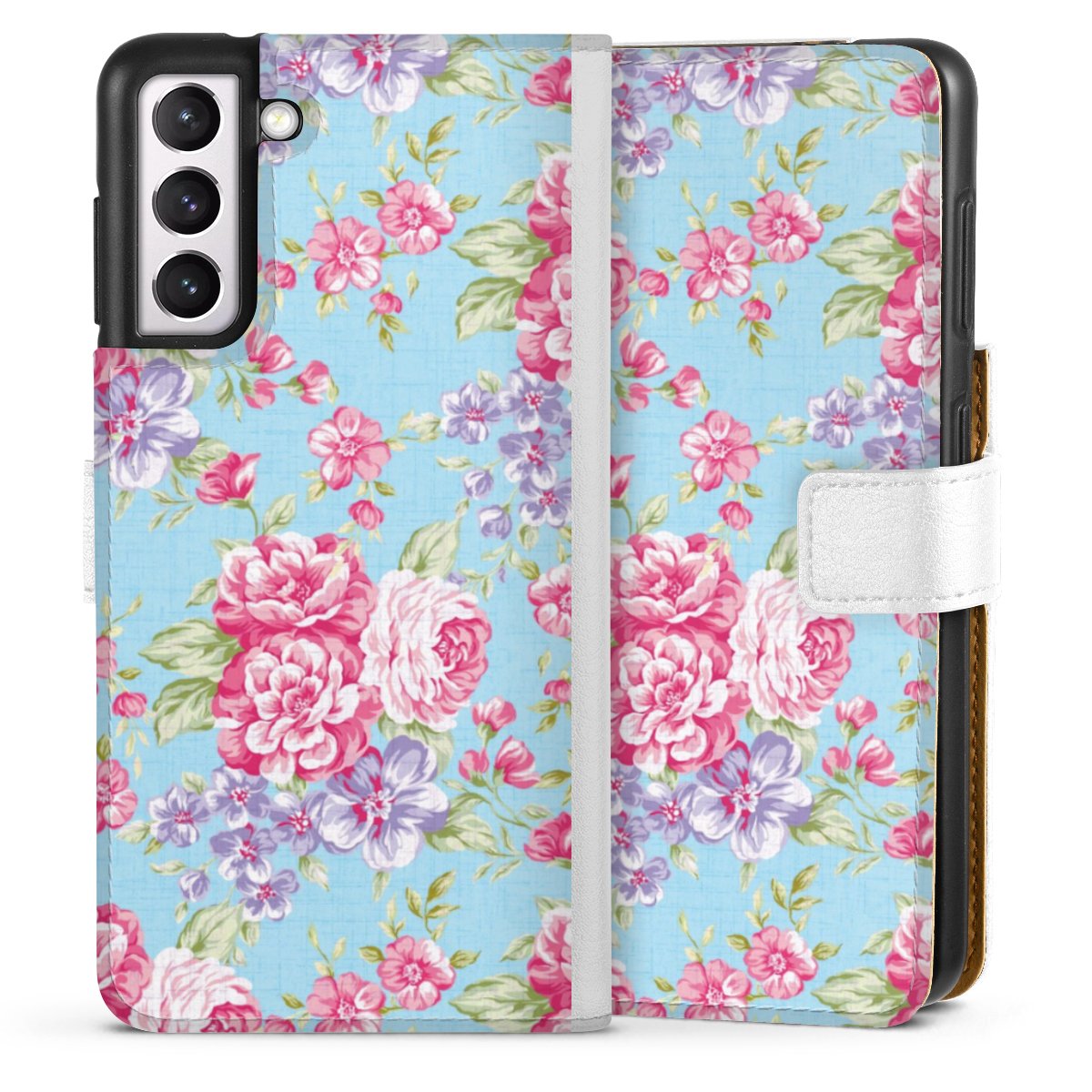 For our Sideflip Case we are using our advanced direct printing technology. The back and frontside are fully printabale, the inside of the phone bag is left unprinted. You can order the phone case without print, printed completely or also with a partial print.