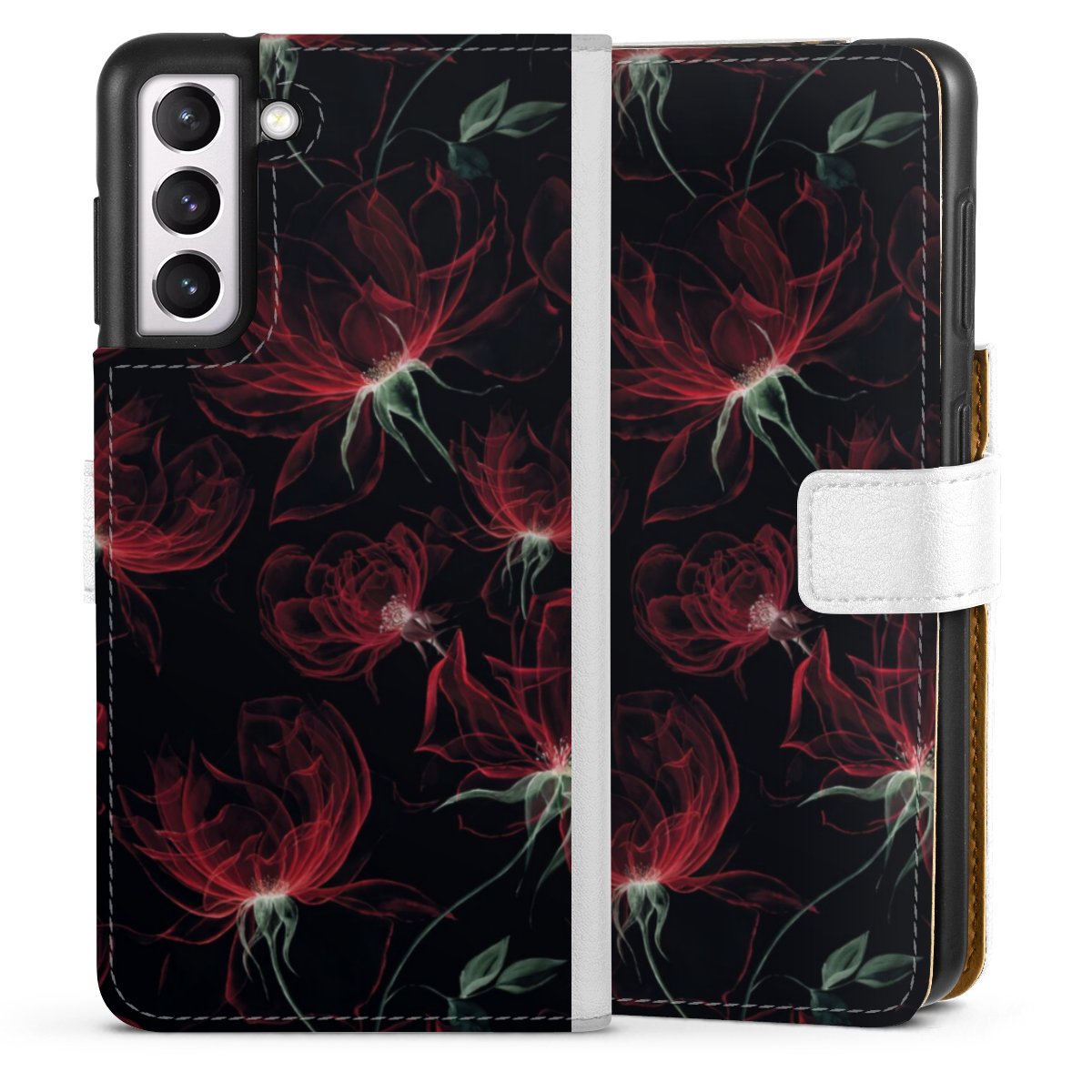 For our Sideflip Case we are using our advanced direct printing technology. The back and frontside are fully printabale, the inside of the phone bag is left unprinted. You can order the phone case without print, printed completely or also with a partial print.