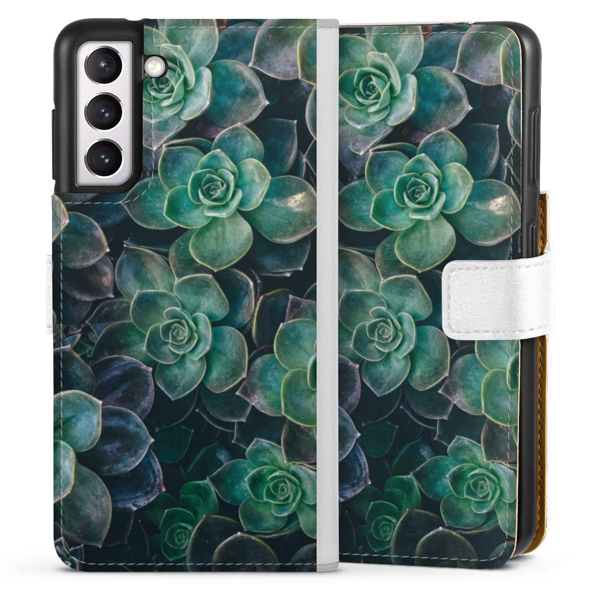 For our Sideflip Case we are using our advanced direct printing technology. The back and frontside are fully printabale, the inside of the phone bag is left unprinted. You can order the phone case without print, printed completely or also with a partial print.