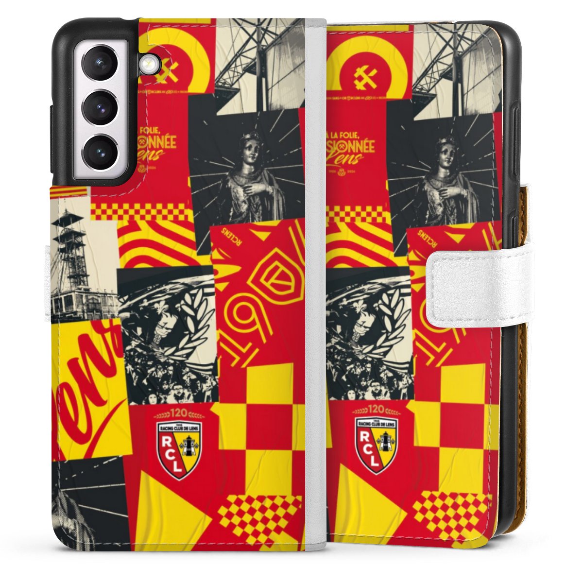 For our Sideflip Case we are using our advanced direct printing technology. The back and frontside are fully printabale, the inside of the phone bag is left unprinted. You can order the phone case without print, printed completely or also with a partial print.