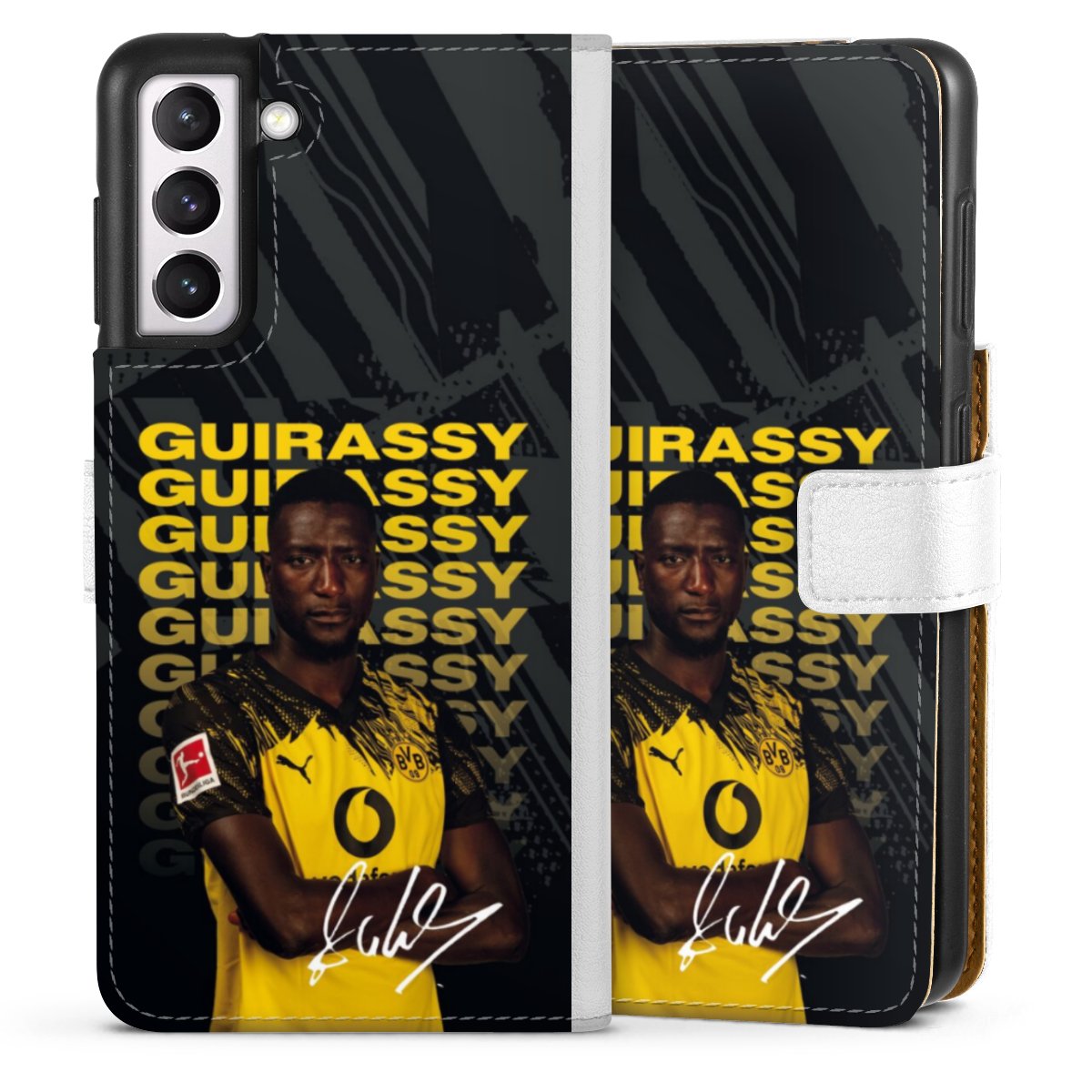 For our Sideflip Case we are using our advanced direct printing technology. The back and frontside are fully printabale, the inside of the phone bag is left unprinted. You can order the phone case without print, printed completely or also with a partial print.