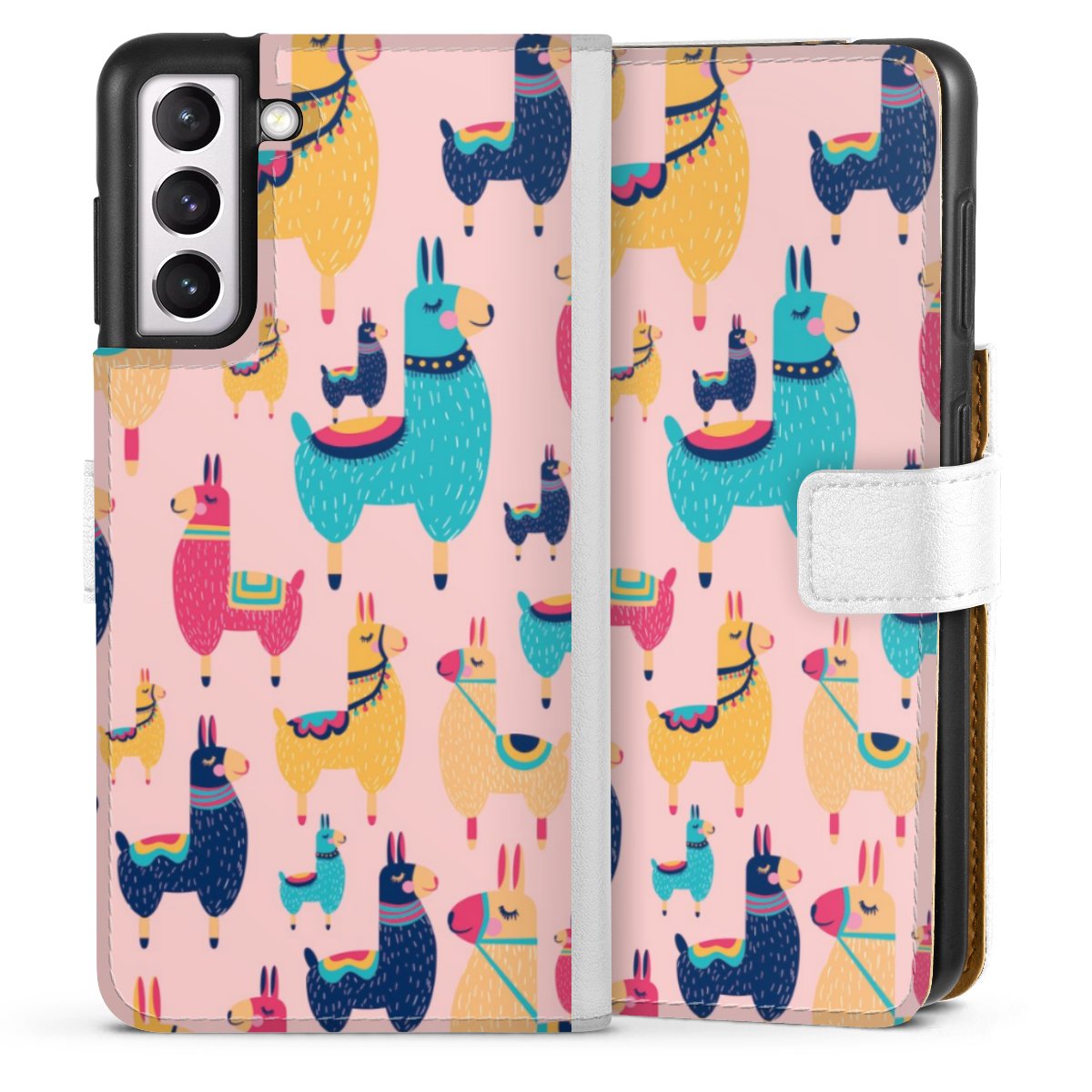 For our Sideflip Case we are using our advanced direct printing technology. The back and frontside are fully printabale, the inside of the phone bag is left unprinted. You can order the phone case without print, printed completely or also with a partial print.