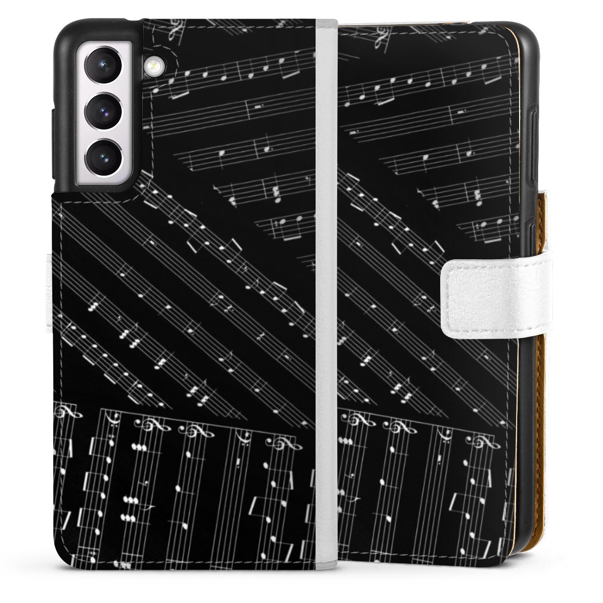 For our Sideflip Case we are using our advanced direct printing technology. The back and frontside are fully printabale, the inside of the phone bag is left unprinted. You can order the phone case without print, printed completely or also with a partial print.