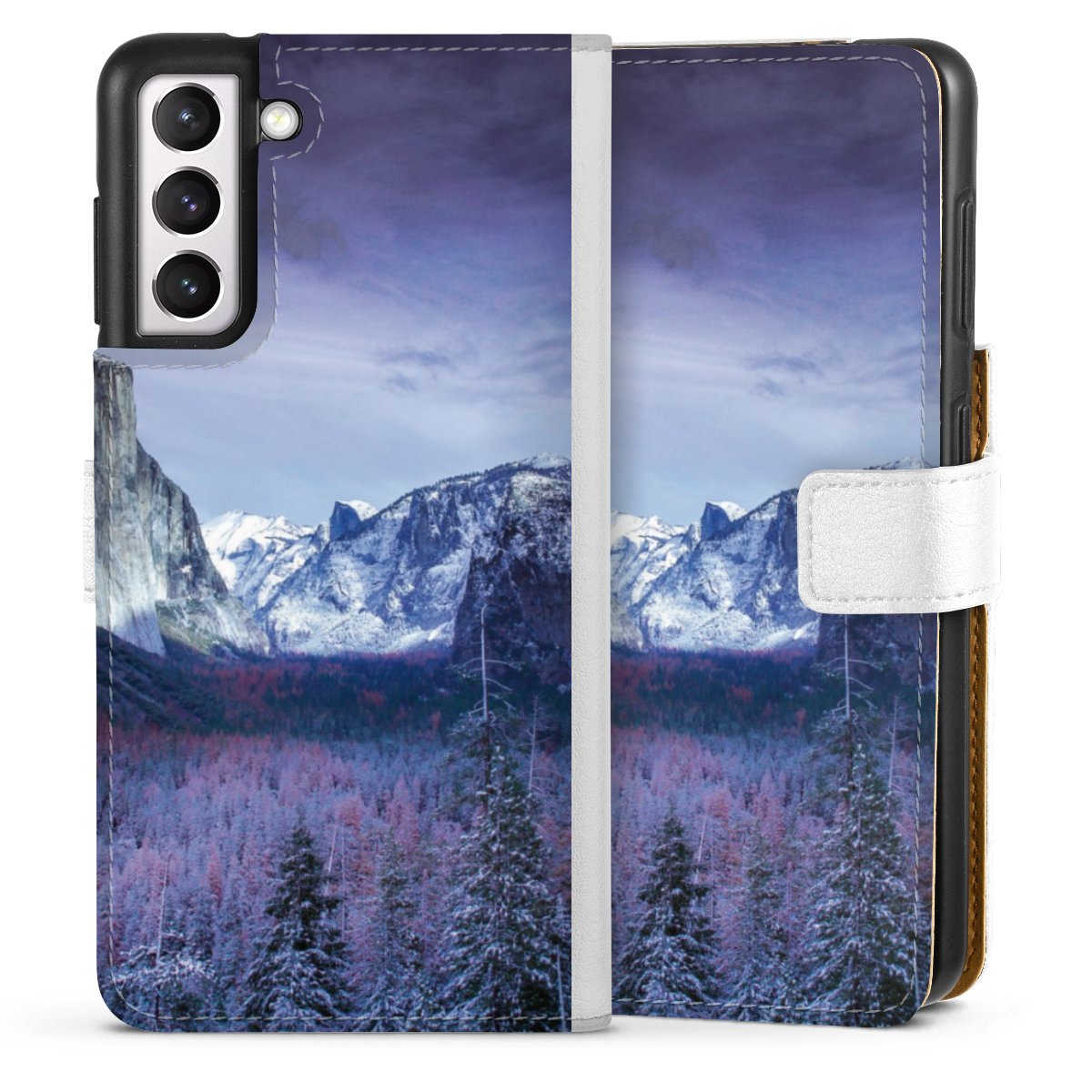 For our Sideflip Case we are using our advanced direct printing technology. The back and frontside are fully printabale, the inside of the phone bag is left unprinted. You can order the phone case without print, printed completely or also with a partial print.