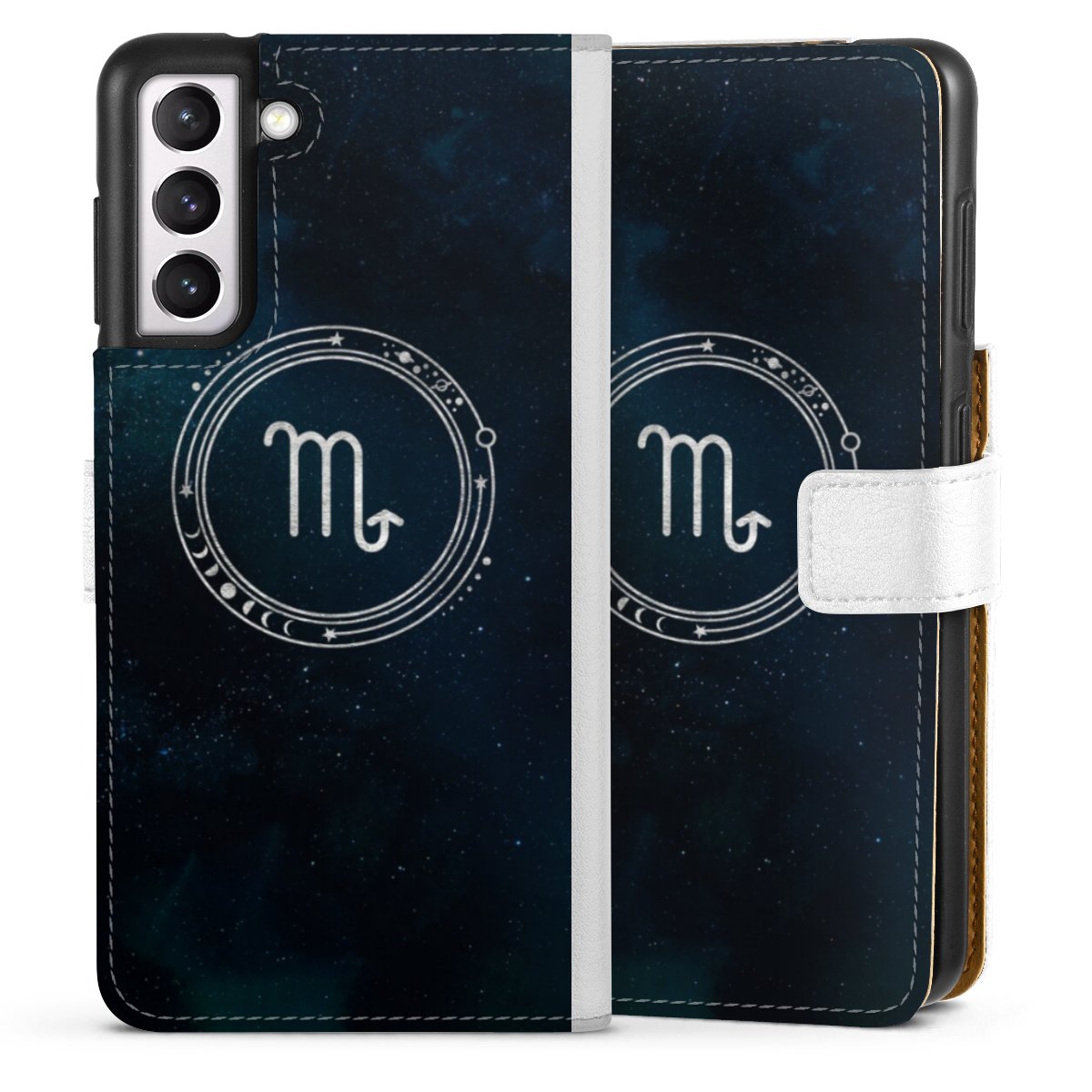 For our Sideflip Case we are using our advanced direct printing technology. The back and frontside are fully printabale, the inside of the phone bag is left unprinted. You can order the phone case without print, printed completely or also with a partial print.