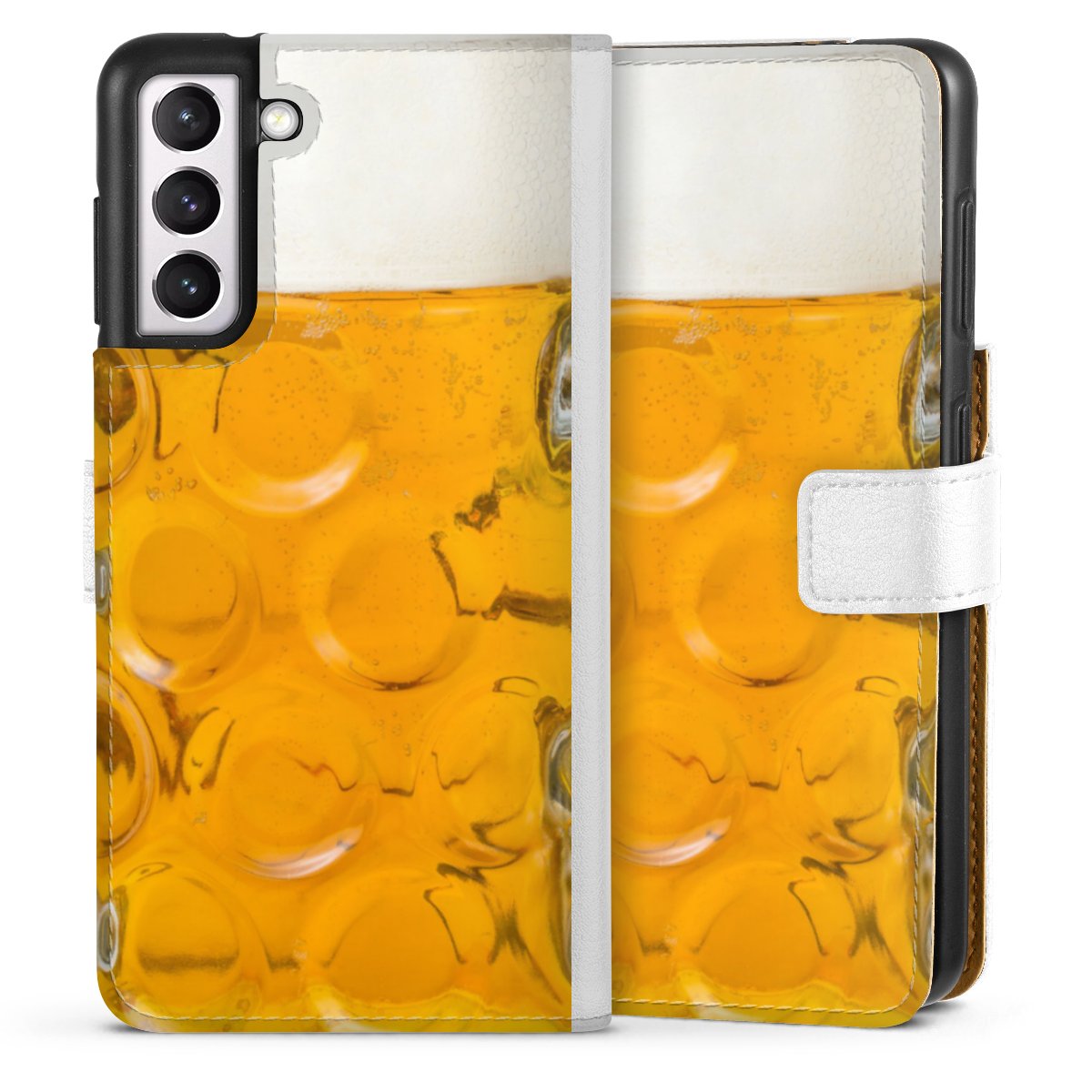For our Sideflip Case we are using our advanced direct printing technology. The back and frontside are fully printabale, the inside of the phone bag is left unprinted. You can order the phone case without print, printed completely or also with a partial print.