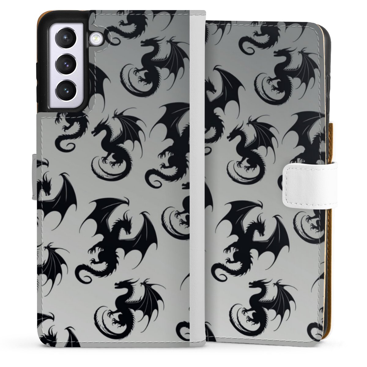 For our Sideflip Case we are using our advanced direct printing technology. The back and frontside are fully printabale, the inside of the phone bag is left unprinted. You can order the phone case without print, printed completely or also with a partial print.