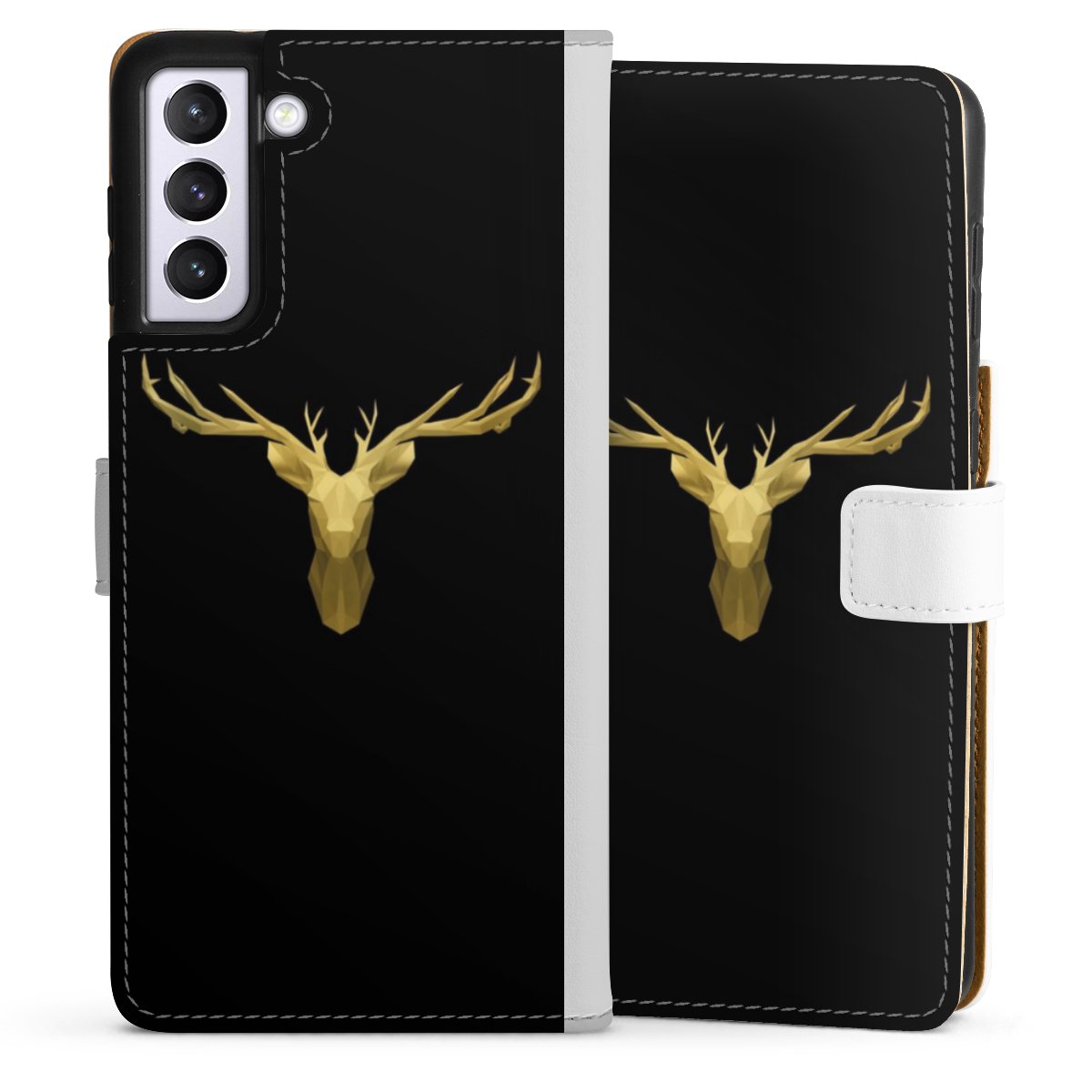 For our Sideflip Case we are using our advanced direct printing technology. The back and frontside are fully printabale, the inside of the phone bag is left unprinted. You can order the phone case without print, printed completely or also with a partial print.