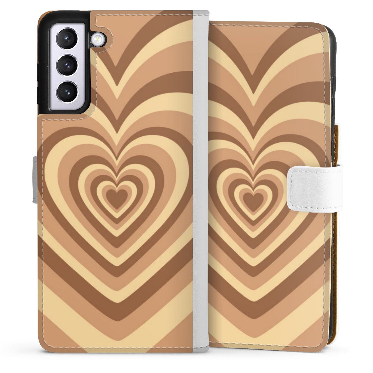 For our Sideflip Case we are using our advanced direct printing technology. The back and frontside are fully printabale, the inside of the phone bag is left unprinted. You can order the phone case without print, printed completely or also with a partial print.
