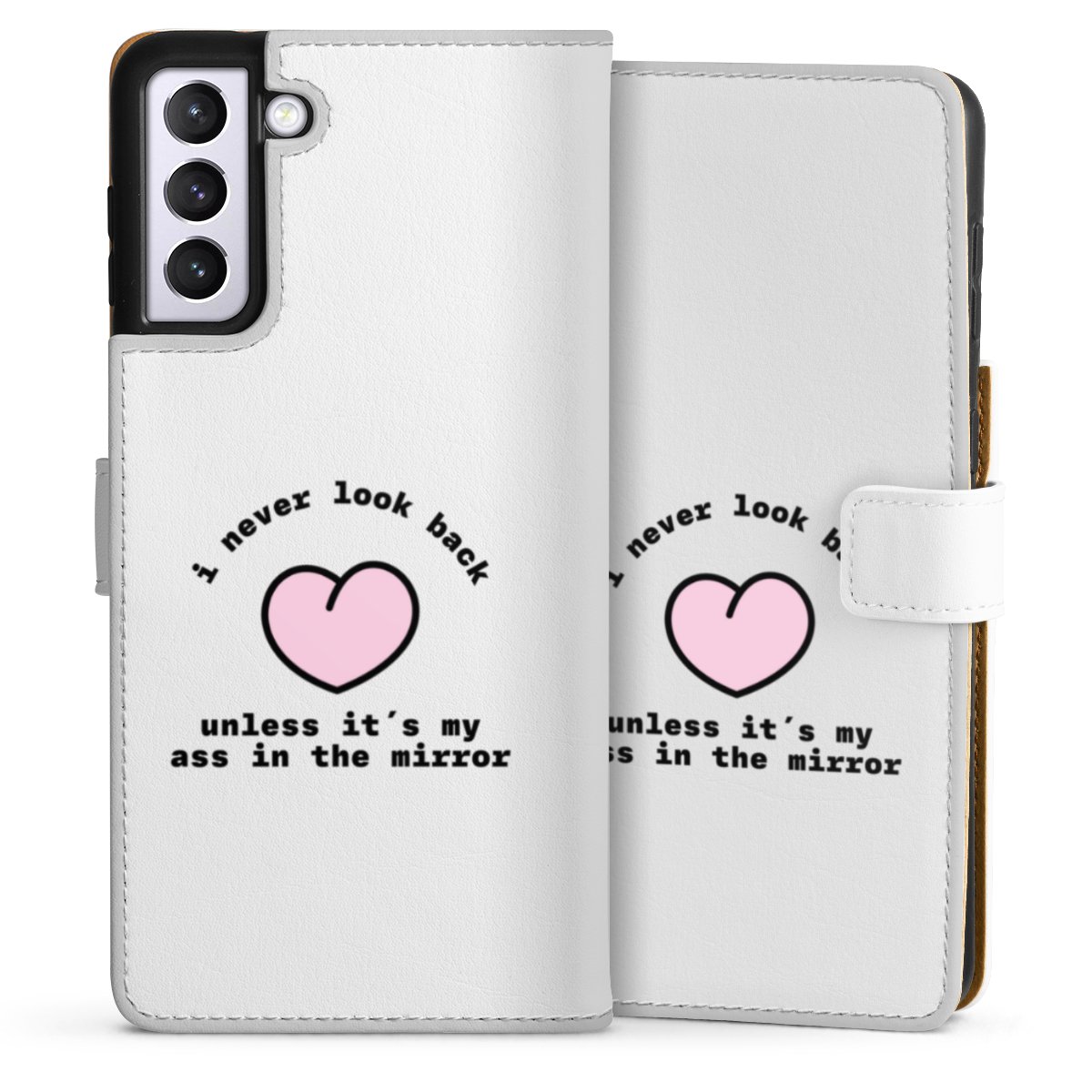 For our Sideflip Case we are using our advanced direct printing technology. The back and frontside are fully printabale, the inside of the phone bag is left unprinted. You can order the phone case without print, printed completely or also with a partial print.