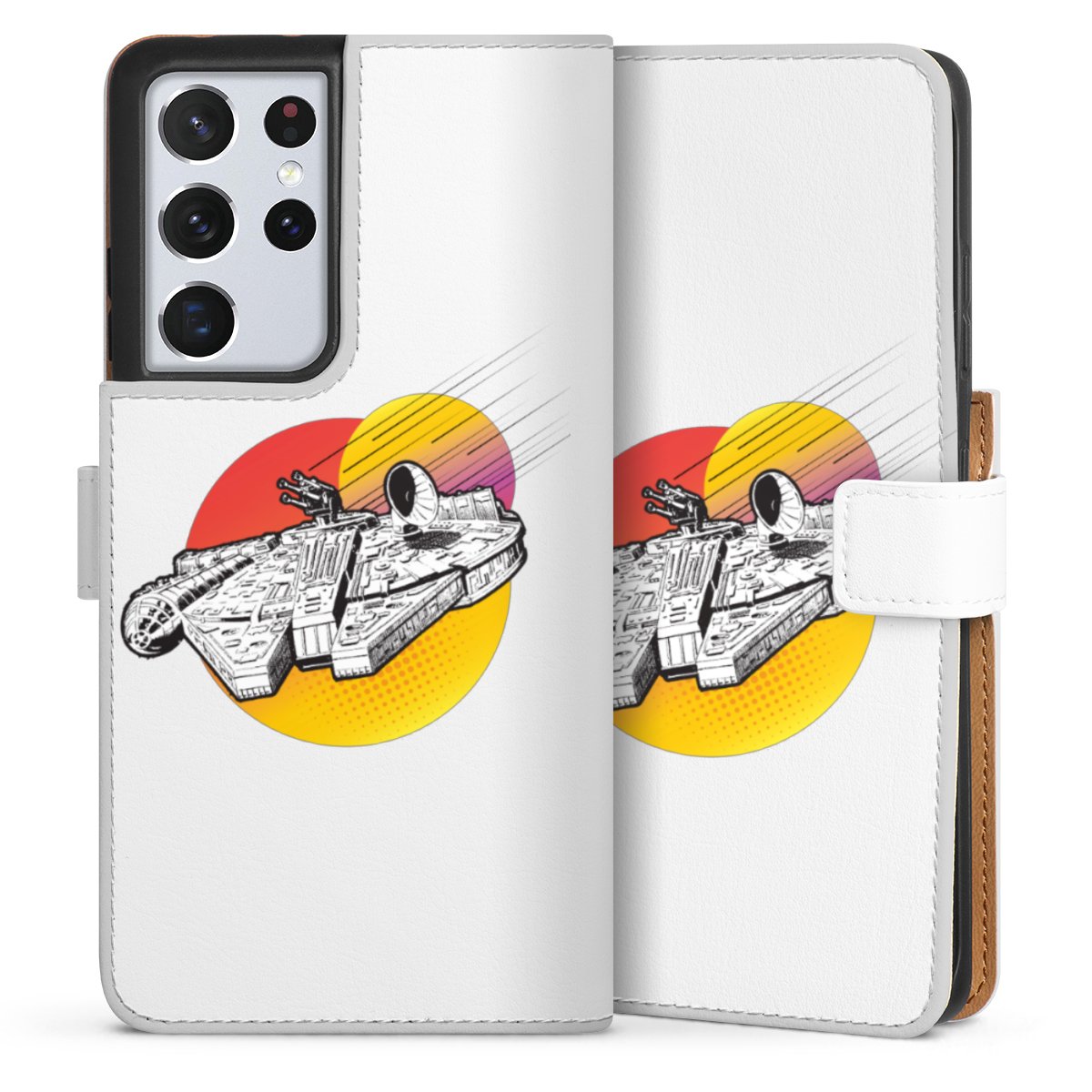 For our Sideflip Case we are using our advanced direct printing technology. The back and frontside are fully printabale, the inside of the phone bag is left unprinted. You can order the phone case without print, printed completely or also with a partial print.