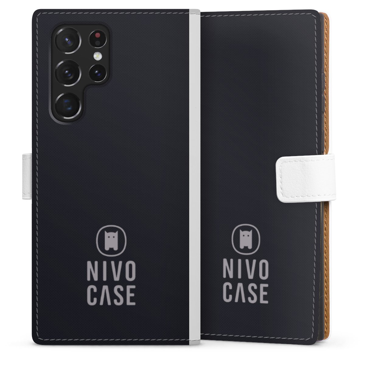 For our Sideflip Case we are using our advanced direct printing technology. The back and frontside are fully printabale, the inside of the phone bag is left unprinted. You can order the phone case without print, printed completely or also with a partial print.