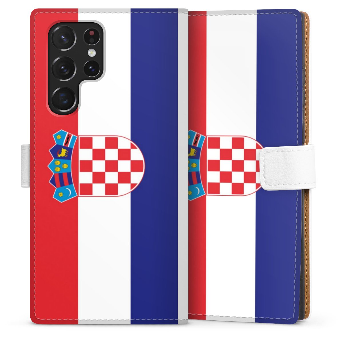 For our Sideflip Case we are using our advanced direct printing technology. The back and frontside are fully printabale, the inside of the phone bag is left unprinted. You can order the phone case without print, printed completely or also with a partial print.