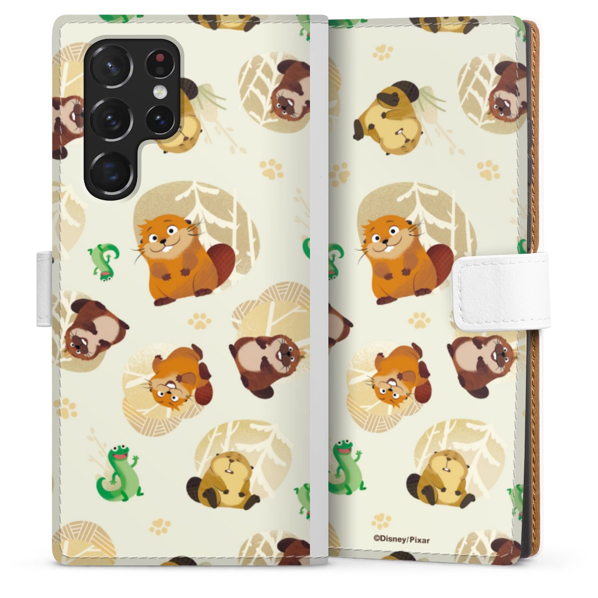 For our Sideflip Case we are using our advanced direct printing technology. The back and frontside are fully printabale, the inside of the phone bag is left unprinted. You can order the phone case without print, printed completely or also with a partial print.