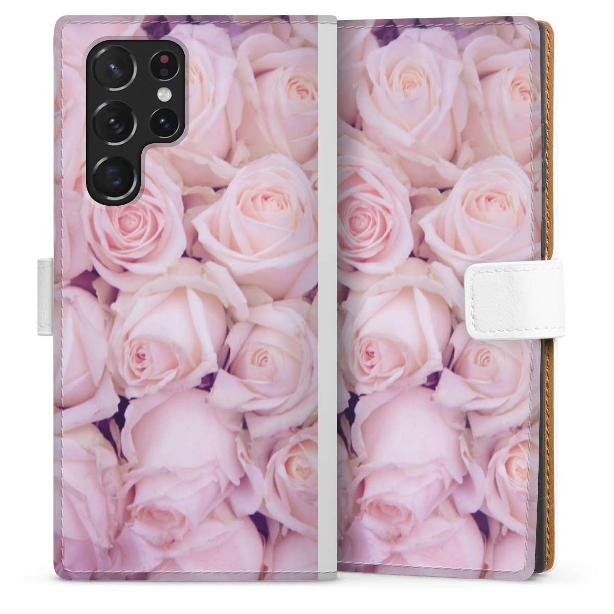 For our Sideflip Case we are using our advanced direct printing technology. The back and frontside are fully printabale, the inside of the phone bag is left unprinted. You can order the phone case without print, printed completely or also with a partial print.