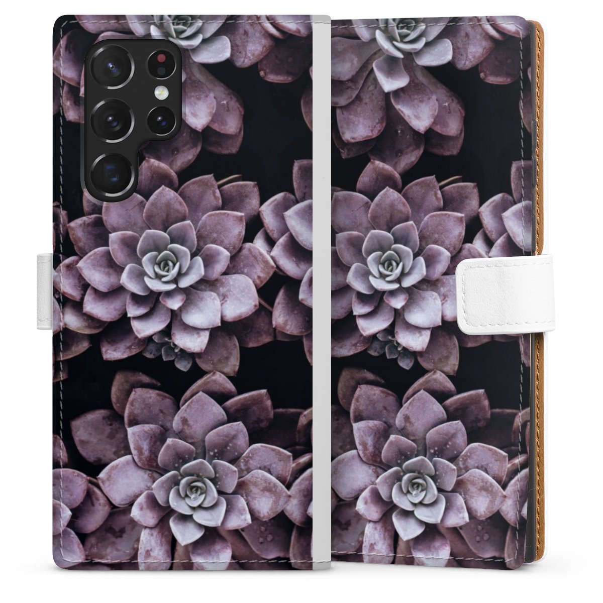 For our Sideflip Case we are using our advanced direct printing technology. The back and frontside are fully printabale, the inside of the phone bag is left unprinted. You can order the phone case without print, printed completely or also with a partial print.