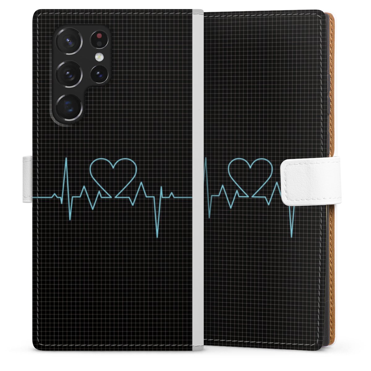 For our Sideflip Case we are using our advanced direct printing technology. The back and frontside are fully printabale, the inside of the phone bag is left unprinted. You can order the phone case without print, printed completely or also with a partial print.