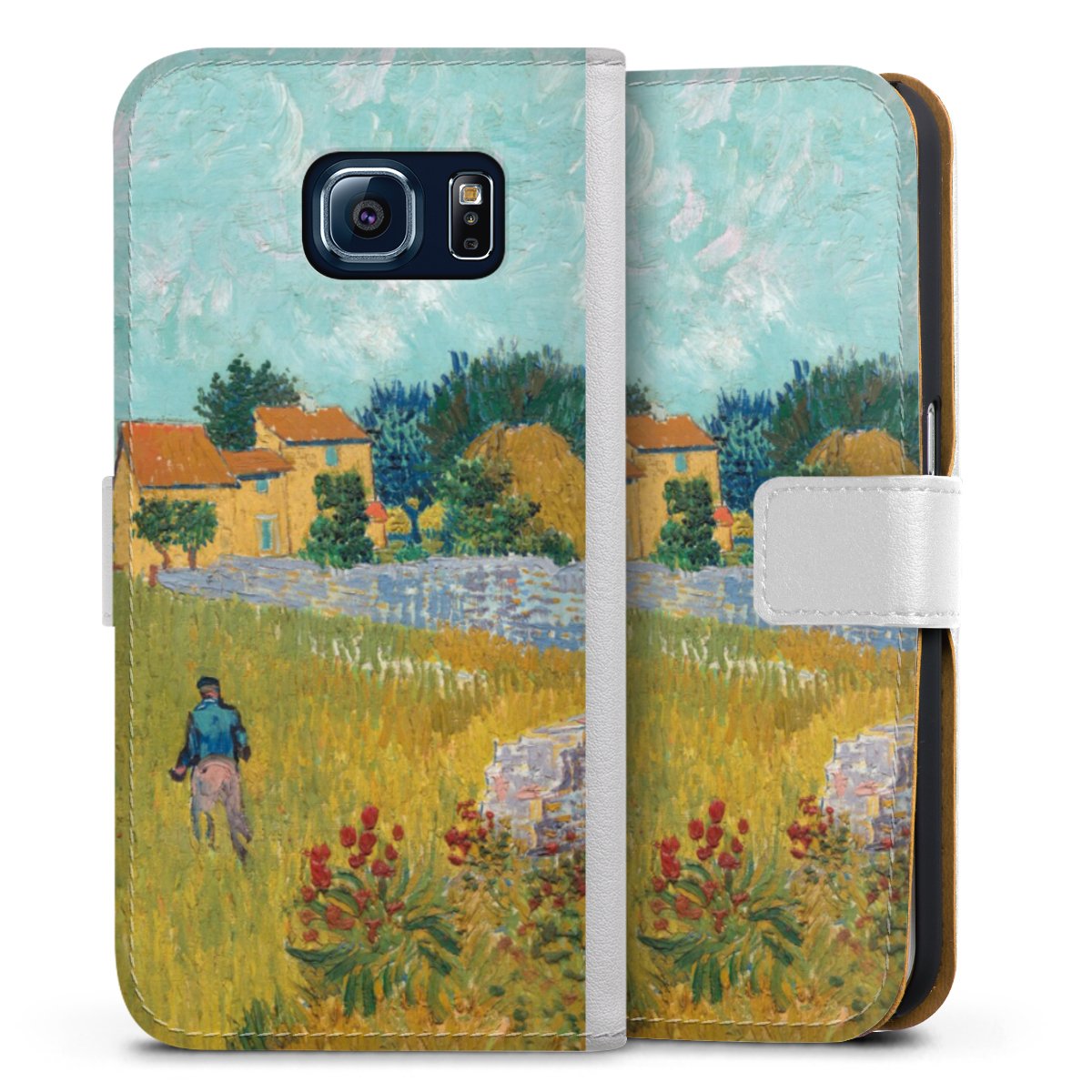 For our Sideflip Case we are using our advanced direct printing technology. The back and frontside are fully printabale, the inside of the phone bag is left unprinted. You can order the phone case without print, printed completely or also with a partial print.