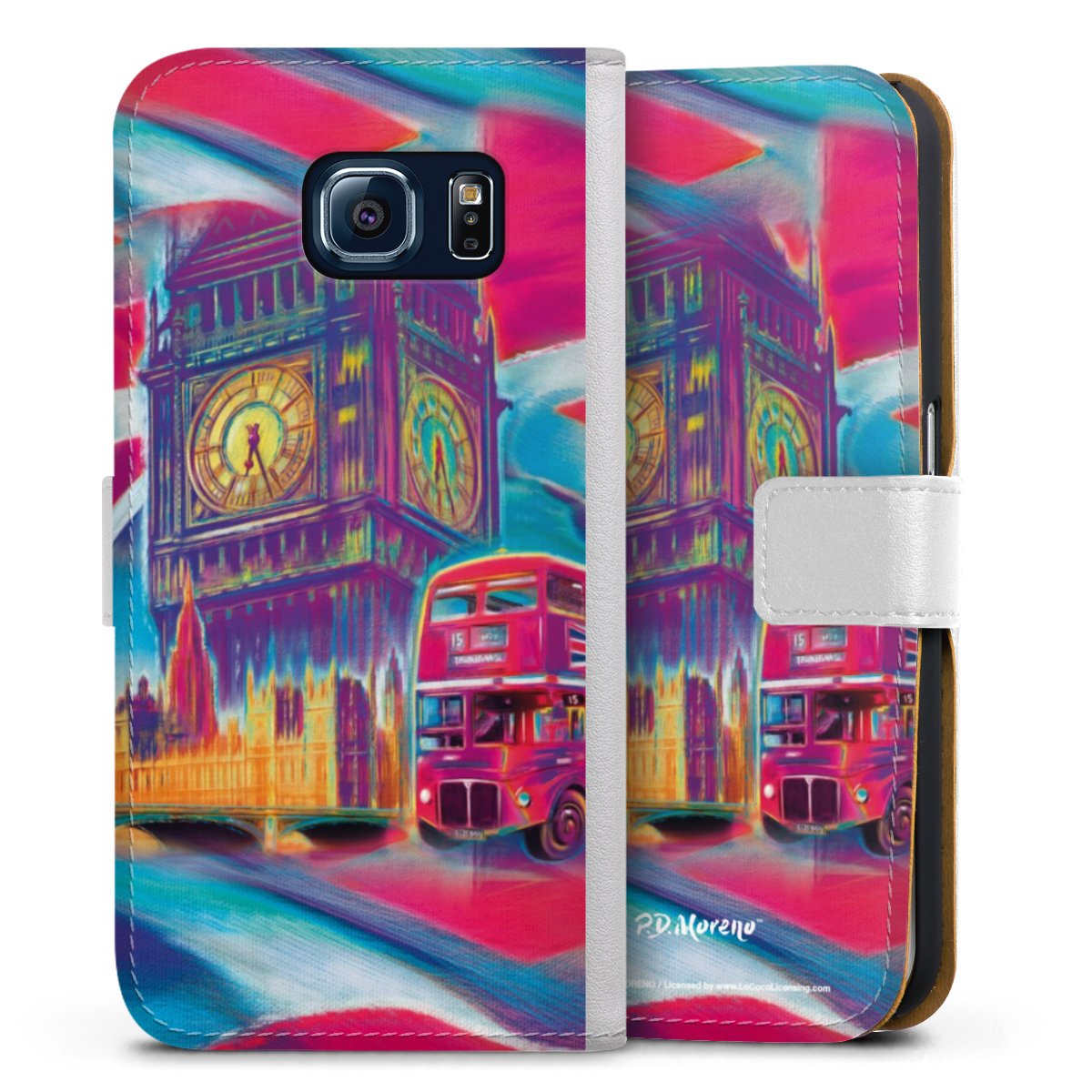 For our Sideflip Case we are using our advanced direct printing technology. The back and frontside are fully printabale, the inside of the phone bag is left unprinted. You can order the phone case without print, printed completely or also with a partial print.