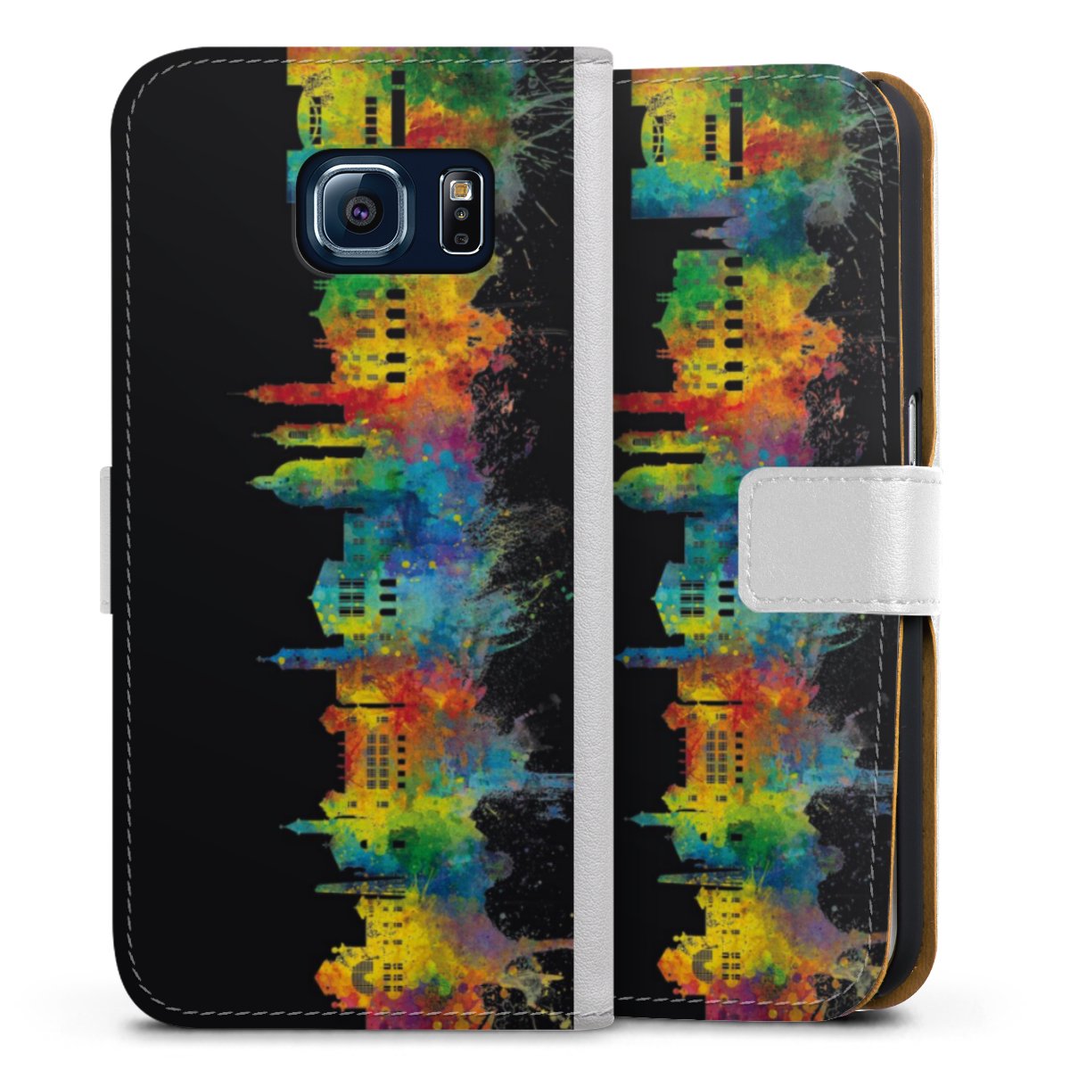 For our Sideflip Case we are using our advanced direct printing technology. The back and frontside are fully printabale, the inside of the phone bag is left unprinted. You can order the phone case without print, printed completely or also with a partial print.