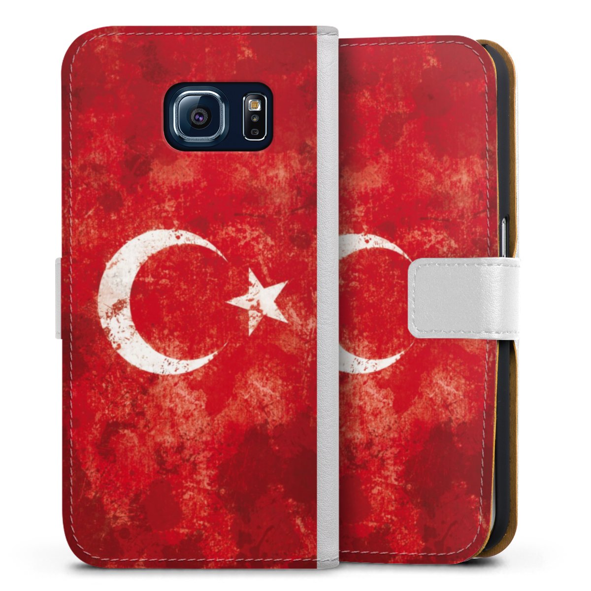 For our Sideflip Case we are using our advanced direct printing technology. The back and frontside are fully printabale, the inside of the phone bag is left unprinted. You can order the phone case without print, printed completely or also with a partial print.