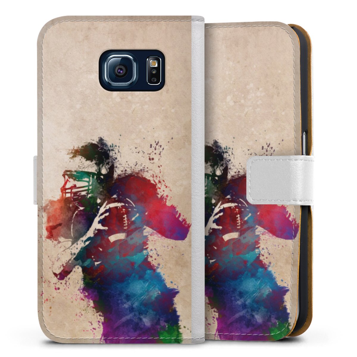 For our Sideflip Case we are using our advanced direct printing technology. The back and frontside are fully printabale, the inside of the phone bag is left unprinted. You can order the phone case without print, printed completely or also with a partial print.