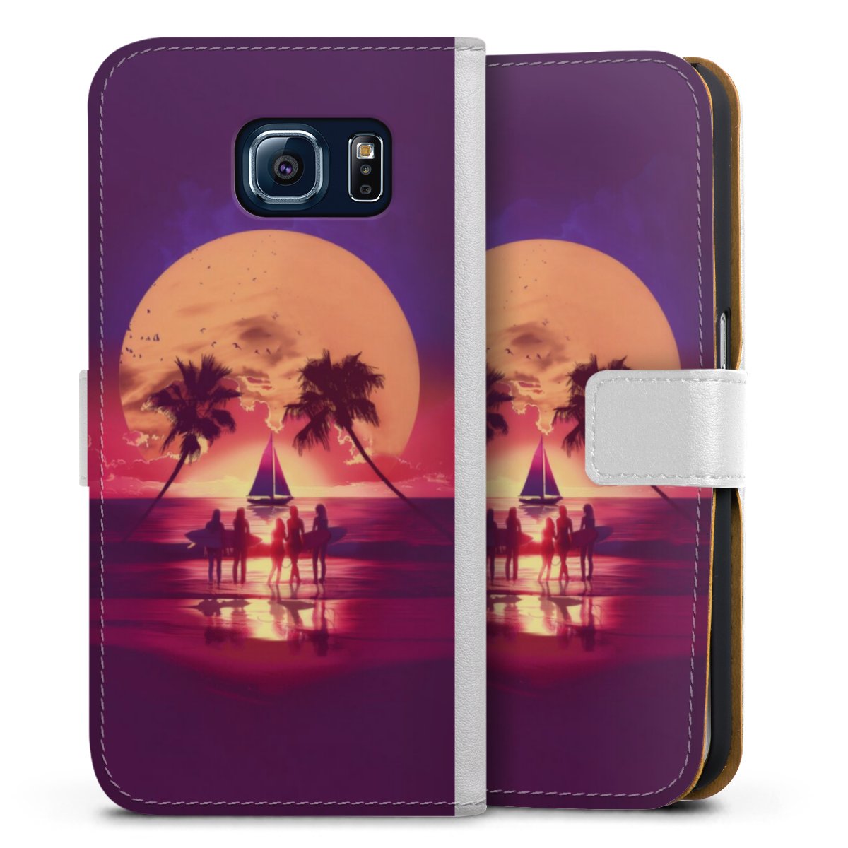 For our Sideflip Case we are using our advanced direct printing technology. The back and frontside are fully printabale, the inside of the phone bag is left unprinted. You can order the phone case without print, printed completely or also with a partial print.