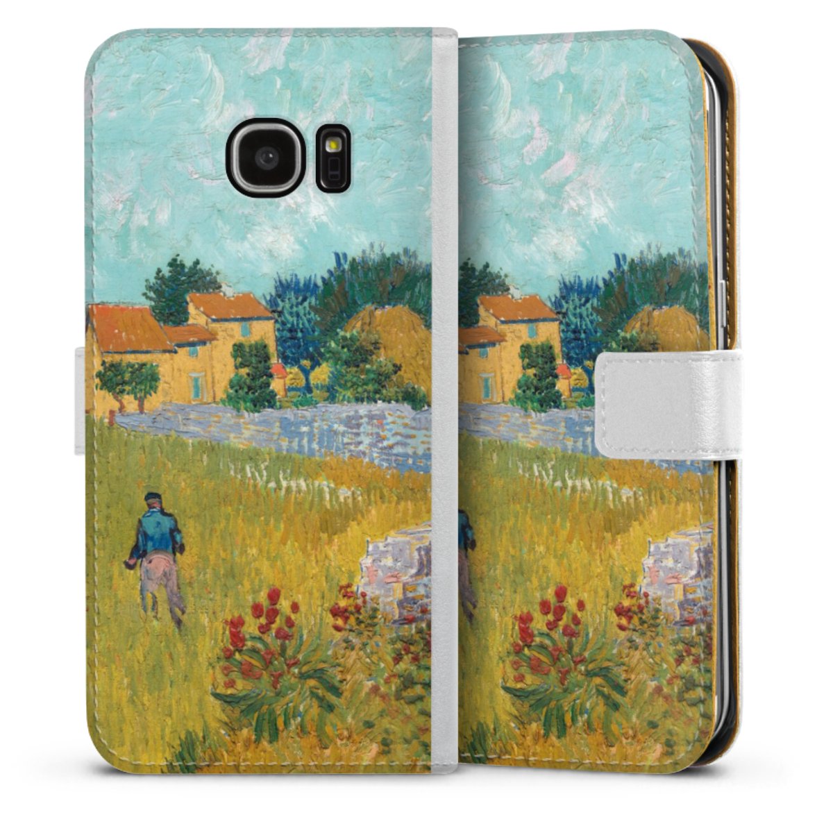 For our Sideflip Case we are using our advanced direct printing technology. The back and frontside are fully printabale, the inside of the phone bag is left unprinted. You can order the phone case without print, printed completely or also with a partial print.