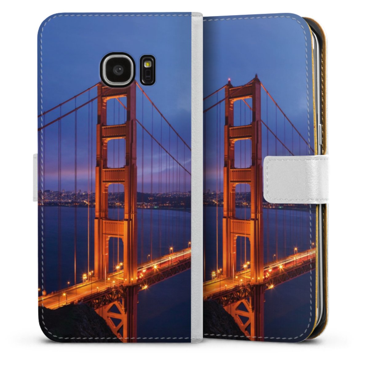 For our Sideflip Case we are using our advanced direct printing technology. The back and frontside are fully printabale, the inside of the phone bag is left unprinted. You can order the phone case without print, printed completely or also with a partial print.