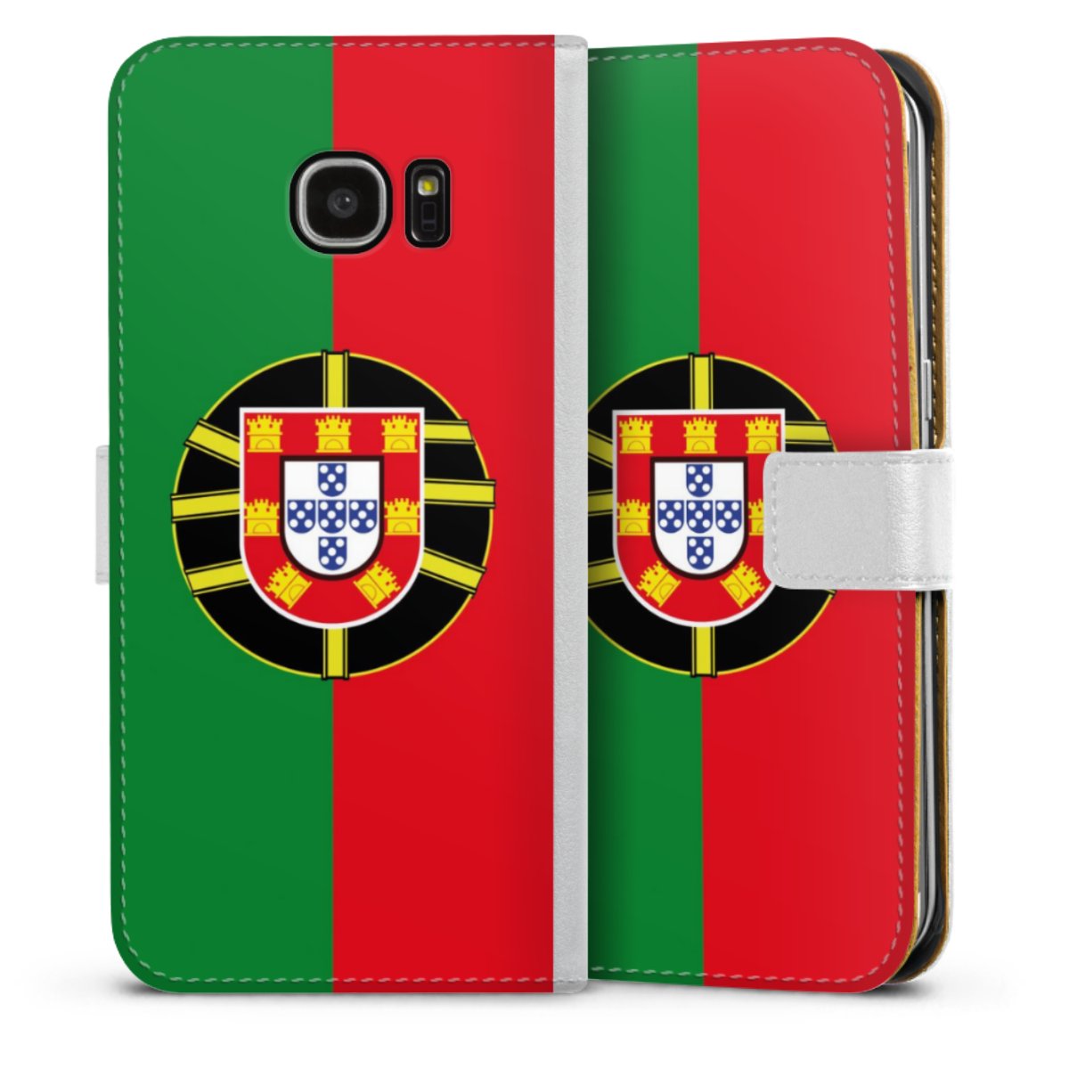 For our Sideflip Case we are using our advanced direct printing technology. The back and frontside are fully printabale, the inside of the phone bag is left unprinted. You can order the phone case without print, printed completely or also with a partial print.