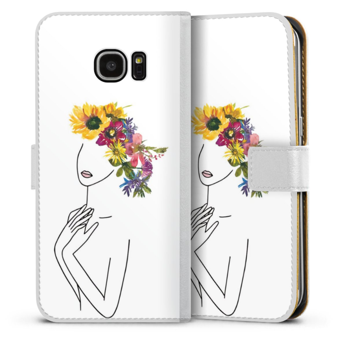For our Sideflip Case we are using our advanced direct printing technology. The back and frontside are fully printabale, the inside of the phone bag is left unprinted. You can order the phone case without print, printed completely or also with a partial print.