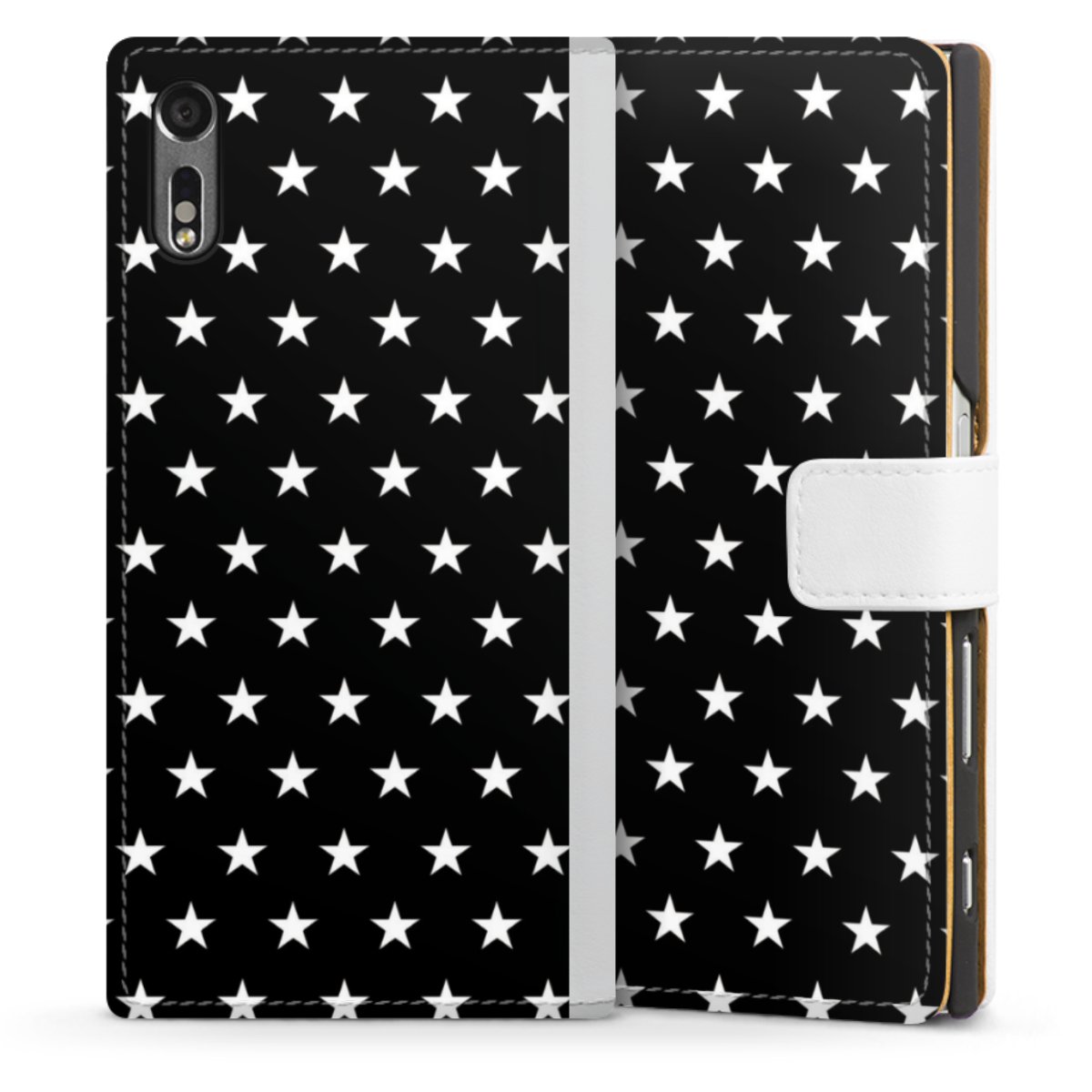 For our Sideflip Case we are using our advanced direct printing technology. The back and frontside are fully printabale, the inside of the phone bag is left unprinted. You can order the phone case without print, printed completely or also with a partial print.