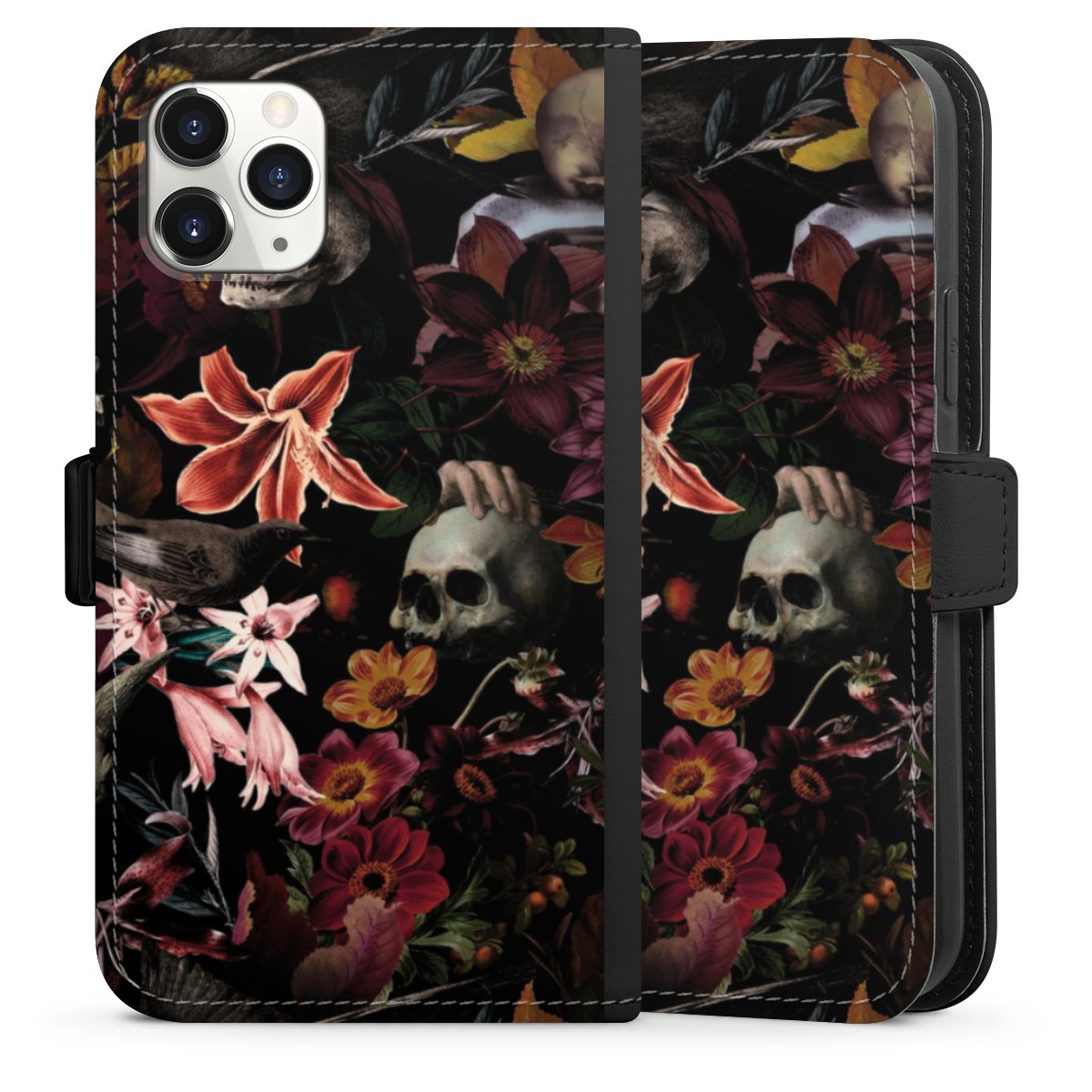Skulls and Flowers on Dark Background