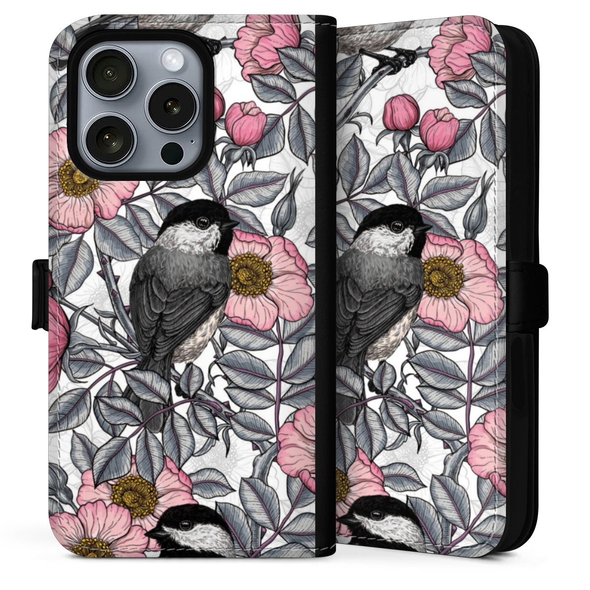 Chickadees and Wild Rose