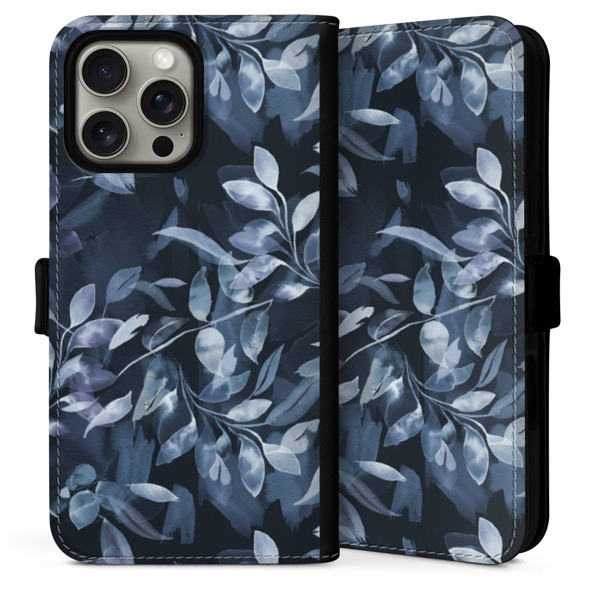 Watercolor Mystic Leaves Navy