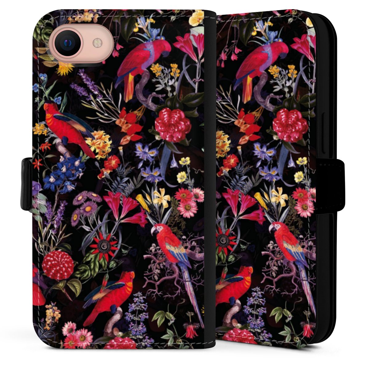 Dark Flowers and Parrots