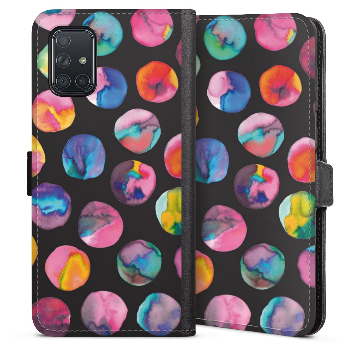 Colorful Ink Marbles Dots Black